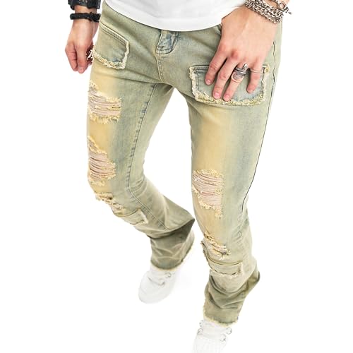 • DESIGN: Classic pockets, zip fly with button closure.ripped holes, slim through hip and thigh with a skinny leg. Zipper closure, slim fit, simple style, basic jeans you need everyday. With enough elasticity and soft cotton material, feels very comfortable and looks great after trying our skinny design denim jeans on