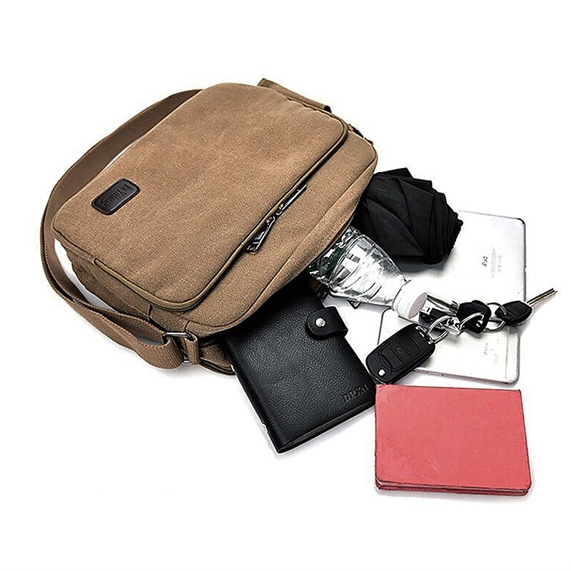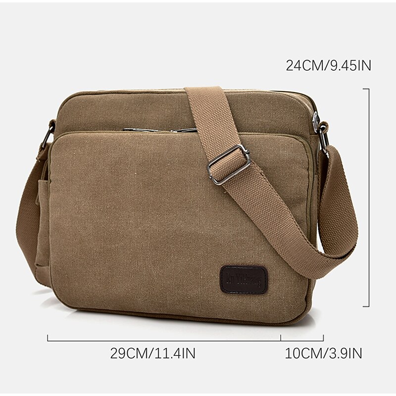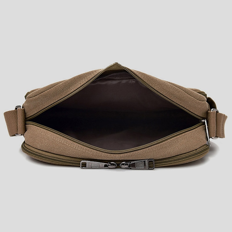 Men's Brown Canvas Messenger Bag with Multiple Pockets and Adjustable Strap for Travel and Daily Use 12