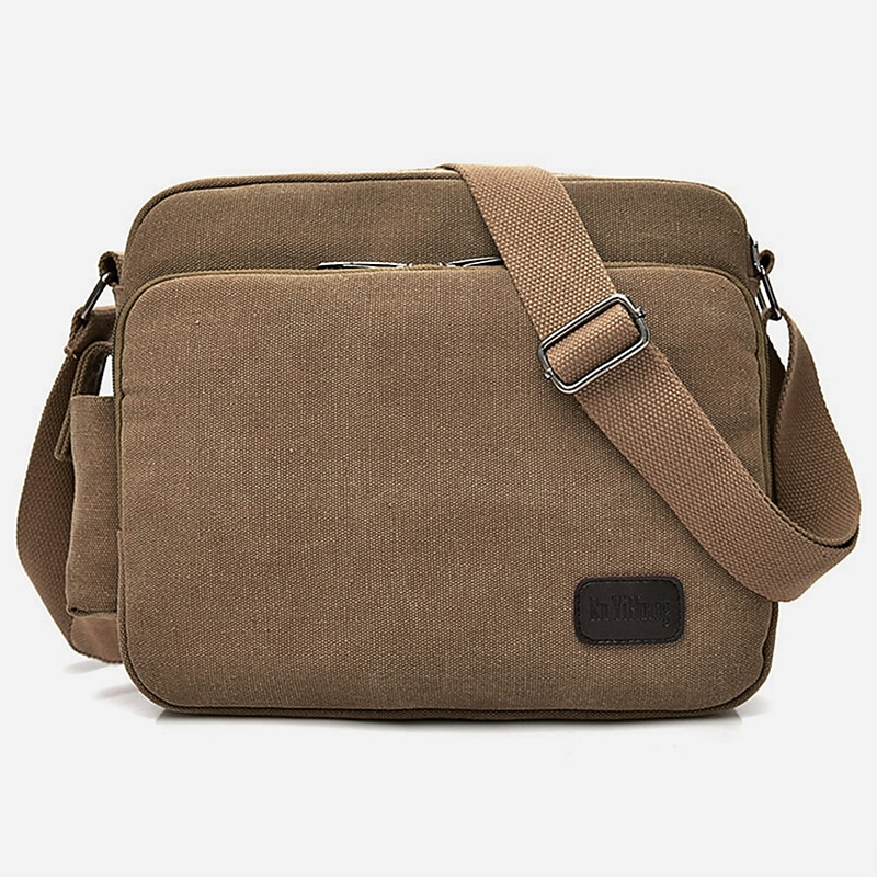 Men's Brown Canvas Messenger Bag with Multiple Pockets and Adjustable Strap for Travel and Daily Use 1