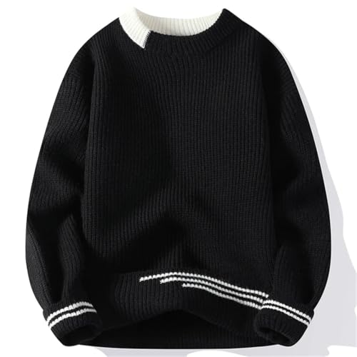 HOT ! Men Retro Color Collision Twist Sweater Loose Fit Round Neck Knit Jumper Pullover Winter Knitted Sweaters