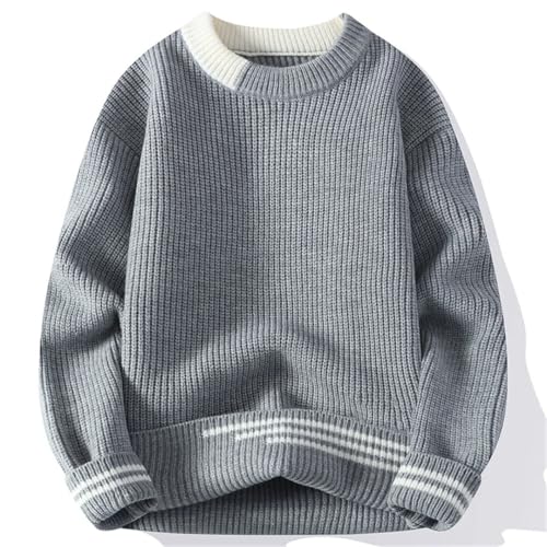 Men Retro Color Collision Twist Sweater Loose Fit Round Neck Knit Jumper Pullover Winter Knitted Sweaters 6