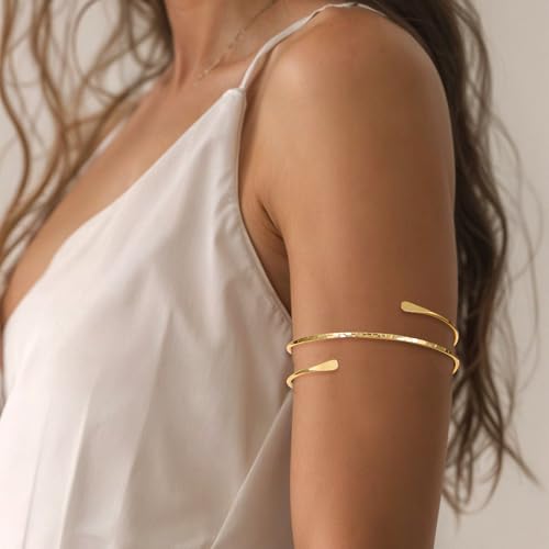 • Lightweight and Comfortable: Discover the charm of our polished gold arm cuffs, each boasting a smooth and lustrous finish that captures the light beautifully. Lightweight and easy to wear, these arm band jewelry pieces promise comfort throughout the day. Perfect for adding a touch of sophistication to any ensemble, they are a true reflection of elegance