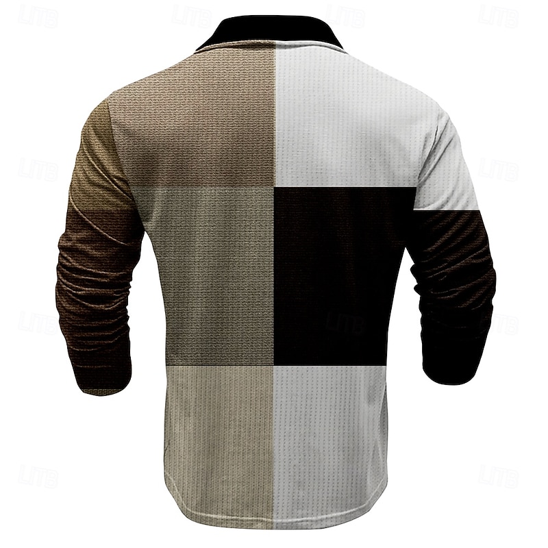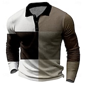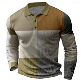 More information about Men's Plaid Golf Shirt Long Sleeve Polo Shirts Collared Shirts Vintage Casual Vacation Wear Formal Wear Festival Wear Buttons 3D Print Spring Fall Winter Dark Brown Black White