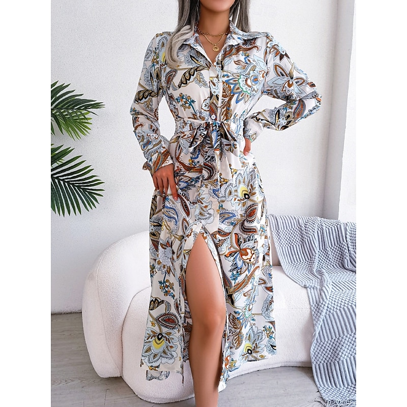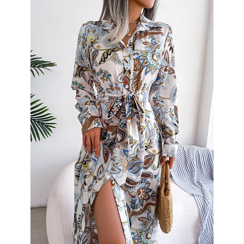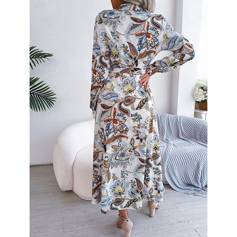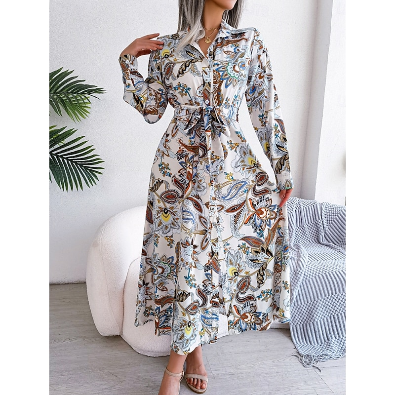 Why Choose Women's Maxi Dress Casual Dress A Line Dress Boho Dress Bohemia sophisticated Casual Vacation Daily Regular Fit Paisley Long Sleeve Shirt Collar White Royal Blue Spring Fall?
