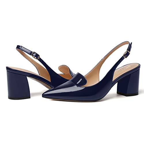ROSERWISH Womens Patent Dress Pointed Toe Fashion Buckle Slingback Casual Chunky Mid Heel Pumps Dress Shoes 2.5 Inch 5