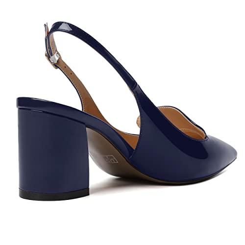 ROSERWISH Womens Patent Dress Pointed Toe Fashion Buckle Slingback Casual Chunky Mid Heel Pumps Dress Shoes 2.5 Inch 3