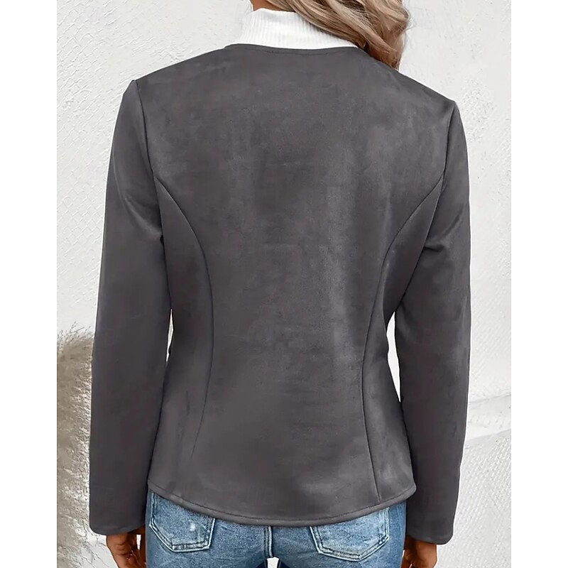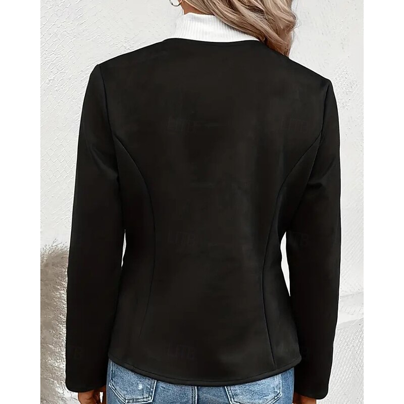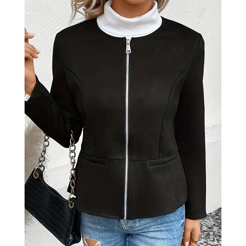 More information about Women's Faux Leather Jacket Casual Jacket Warm Comfortable Zipper Pocket Fashion Plain Outdoor Street Going out Casual Daily Zipper Regular Crewneck Regular Fit Long Sleeve Outerwear Black Blue Dark