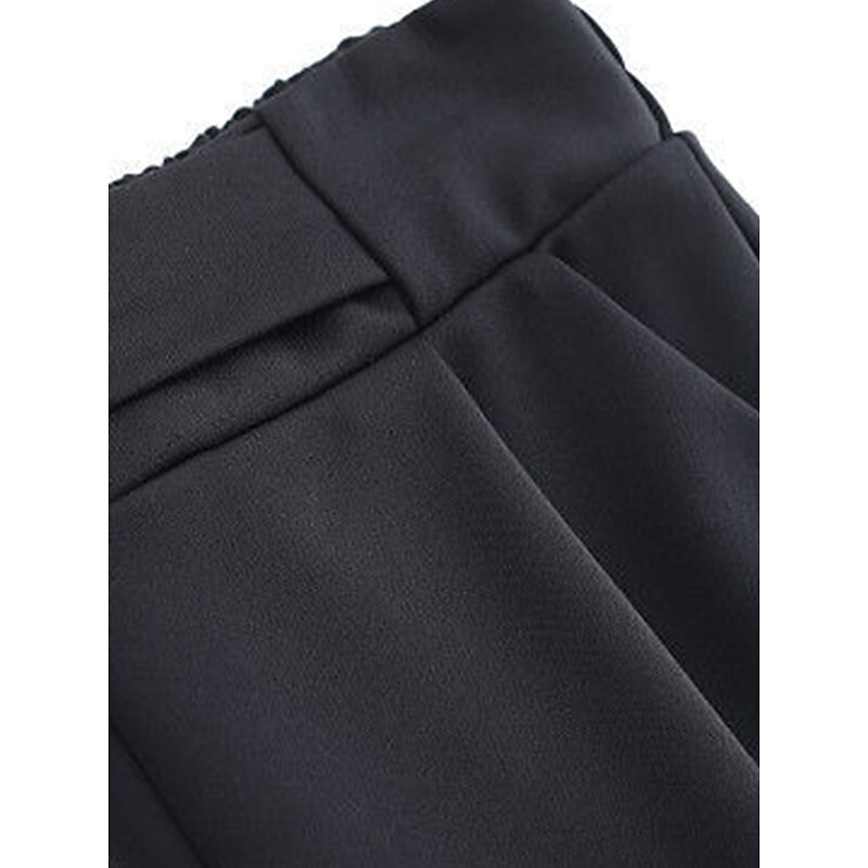 Highlights [Fabric] : Crafted from a high-quality blend of polyester, these women's dress pants offer both durability and a hint of micro-elasticity for comfortable wear throughout the day. The fabric is breathable, ensuring you stay comfortable whether you're at the office or out on the town. [Silhouette] : These full-length trousers feature a high-waisted design that accentuates the natural curves of the body, providing a sleek and professional profile. The straight-leg cut adds to their classic appeal, making them a versatile choice for any wardrobe. [Design Highlights] : The pants are equipped with practical pockets and a stylish high cut, enhanced by a chic belt featuring a metallic buckle for a modern touch. This subtle detail elevates the pants, adding a fashionable flair to the overall design. [Occasions] : Perfectly suited for a variety of settings, these pants transition seamlessly from the office to social gatherings. Ideal for work, business meetings, or stylish streetwear, they are a versatile addition to any fashion-forward wardrobe. [Sizes] : Available in a wide range of sizes, from S to 3XL, these trousers ensure a perfect fit for a diverse range of body types, catering to all your style and comfort needs.