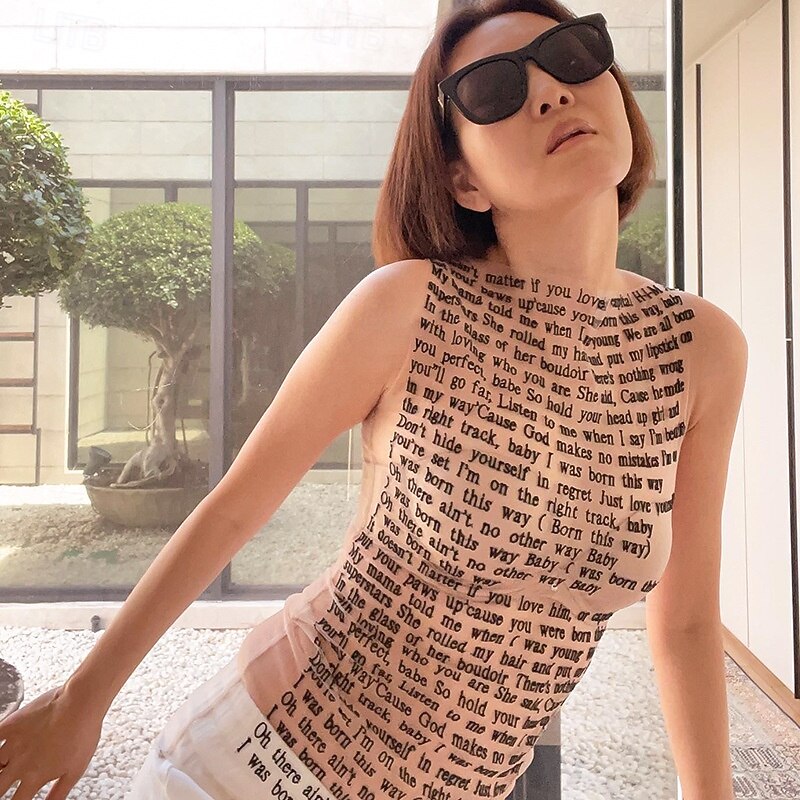 HOT ! Punk & Gothic Rave Groovy Tank Top Disco Mesh Born this Way Round Neck Fancy Dress Women's Halloween Carnival Music Festival Pride Parade Retro Theme Party Adults' Top