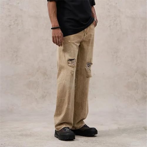 HOT ! Men Summer Distressed Ripped Denim Pants Straight Loose Khaki Jeans Cotton Hollow Out Destroyed Trousers