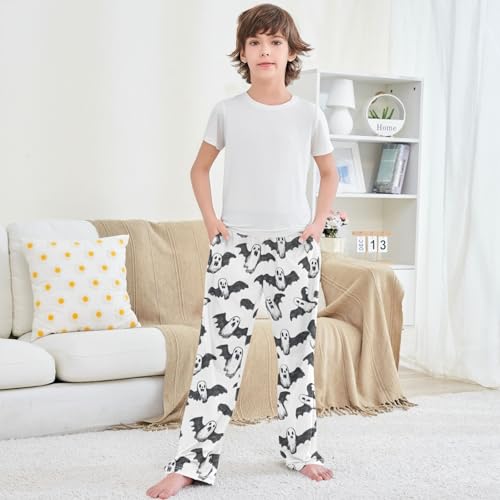 Boy's Pants Cute Ghost Pattern Jogger Pants Elastic Waist Long Bottoms Trousers with Pockets 6-14 Years 6