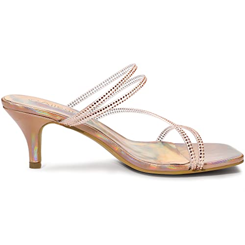 Allegra K Women's Rhinestone Strappy Kitten Heel Slide Heels Sandals 1