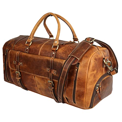 More information about KomalC 24 Inch Leather Duffel Bags for Men and Women Full Grain Leather Travel Overnight Weekend Leather Bags Sports Gym Duffle for Men (Tan with Shoe pocket)