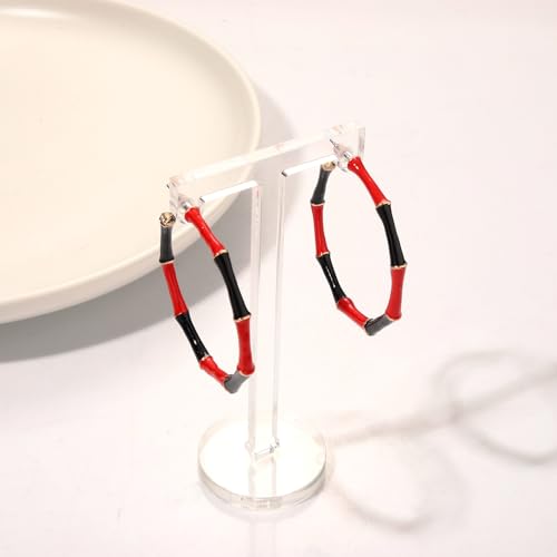 • Fashion Design -Channel nature-inspired elegance with these Bamboo Hoop Earrings, a stunning fusion of organic beauty and luxurious craftsmanship. Designed to mimic the natural structure of bamboo, these hoops feature a vibrant red enamel finish with exquisite gold accents at each joint, creating a bold yet sophisticated look.Whether worn as a statement piece or paired with other accessories, these bamboo-inspired hoops bring a unique and artistic touch to any jewelry collection.
