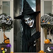 $18.99 - Halloween Door Cover – Evil Grinning Witch with Jack-o'-Lanterns, Haunted House Entrance Banner, Scary Outdoor 2025 Halloween Decoration for Bedroom, Living Room, Bathroom 2025. Shop for cheap Halloween Door Covers online? Buy at lightinthebox.com on sale today!
