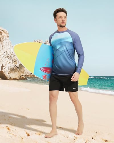• UPF 50+ Sun Protection:Swim shirts for men designed with UPF 50+ sun protection,effectively blocking harmful sun rays and reducing the risk of skin damage and sunburn.