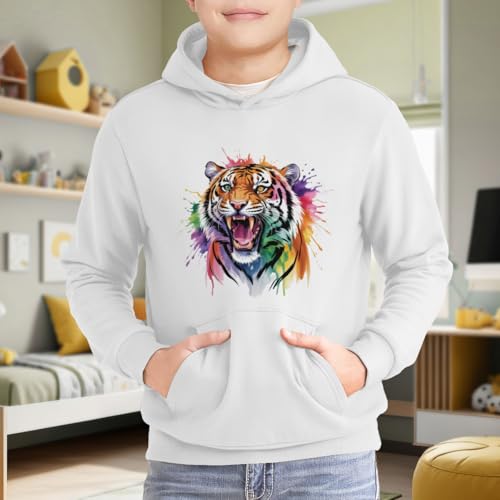 HOT ! Kids Watercolor Tiger Boys Girls Lightweight Kangaroo Pocket Fleece Hoodies