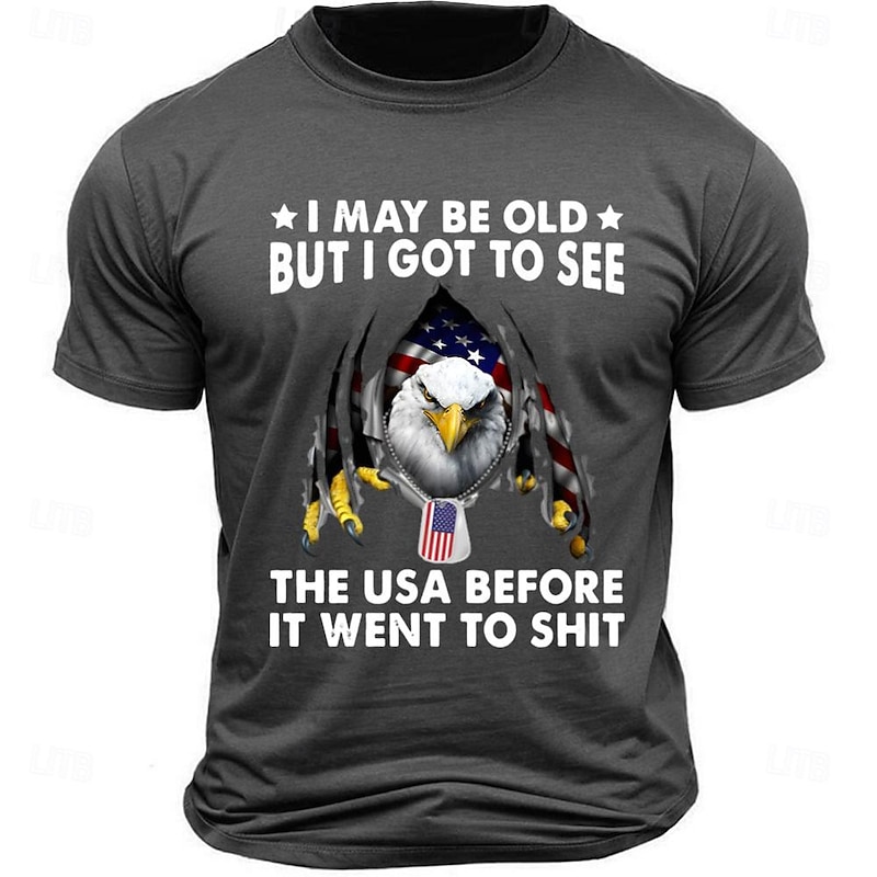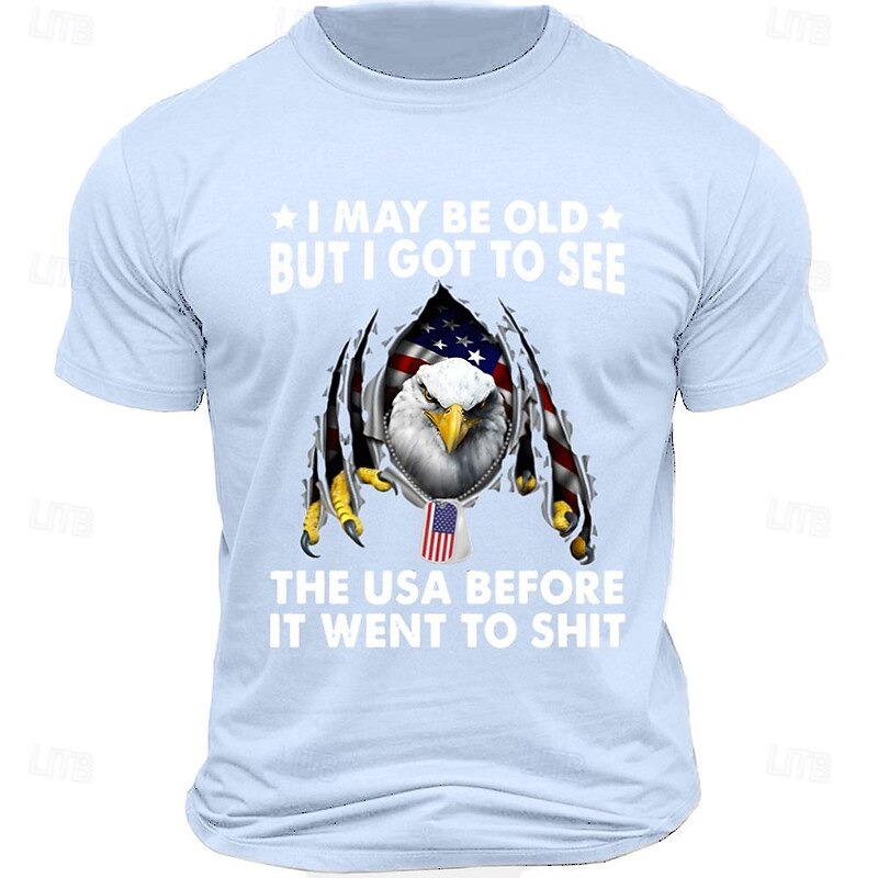 HOT ! Veterans Day Men's Patriot Patriotic Veteran Letter Quotes & Sayings Eagle T shirt Tee Top Short Sleeve T shirt Crew Neck Shirt Sports Classic Casual Street Sports Outdoor Light Blue Black White
