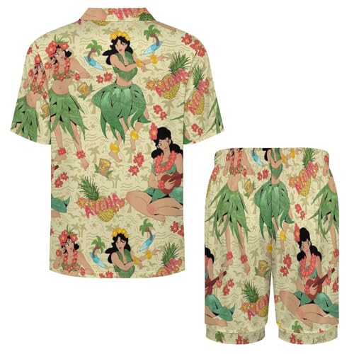 Hawaiian Aloha Mens Pajama Set Short Sleeve 2 Piece Sleepwear Button Down Tops And Shorts Loungewear Outfits 1