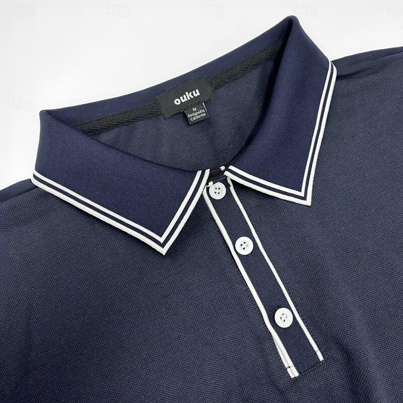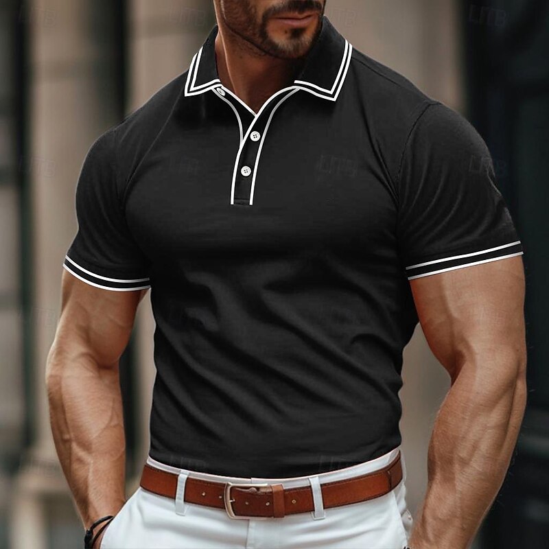 Highlights [Fabric] : Crafted from a high-quality cotton and polyester blend, this Men's Polo Shirt offers breathable comfort and durability. The micro-elastic feature ensures a comfortable fit that moves with you throughout the day. [Fit] : Designed with a regular fit, this shirt provides easy comfort, suitable for all-day wear. The slim tailoring enhances the physique without compromising on freedom of movement. [Design Highlights] : This polo shirt features a ribbed collar and classic short sleeves, stylishly detailed with white piping. The button closure at the neckline adds a sophisticated touch, perfect for various occasions. Available in a range of solid colors—Burgundy, Black, Royal Blue, and Navy Blue—it is a timeless addition to any wardrobe. [Occasions] : Versatile and stylish, this polo shirt is ideal for work, business casual environments, or a day at the golf course. Pair it with chinos or jeans for a polished look suitable for both casual and semi-formal settings. [Size Range] : Available in a wide range of sizes from S to 3XL, ensuring a perfect fit for most body types.