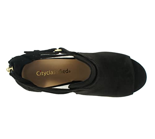More information about CITYCLASSIFIED Invest ~ Women's Cutout Side Strap Mid Black Chunky Heel Fashion Ankle Bootie