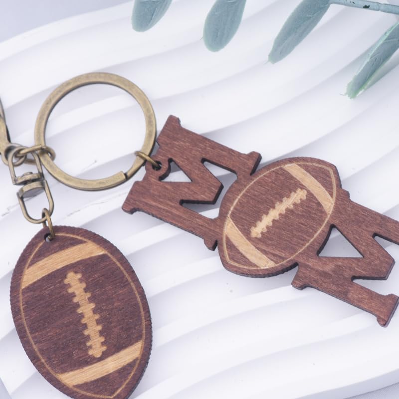 • 【High Quality Football Mom Tote Bag Charms for Bags Purse】The football wooden keychain is made of the wood, not fade and rust, exquisite and light, which are securely attached to a sturdy keyring, ensuring years of use, as a perfect football team gifts for women girls football coaches, cute rugby themed gifts for girls women team mom, best football player birthday gifts for women mom mama