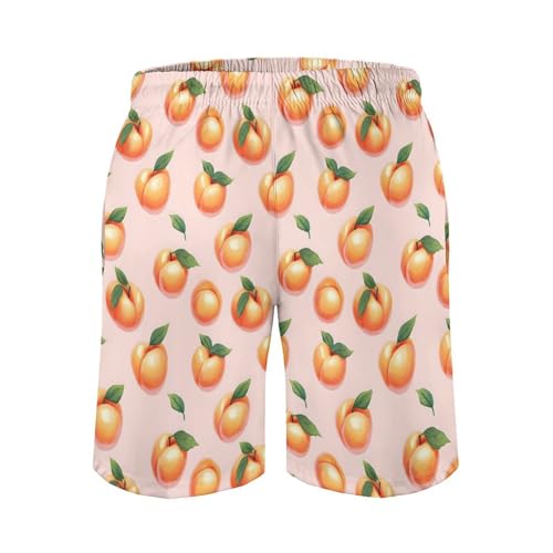 HOT ! Hawaiian Shorts for Men - Bright Peach Print Quick Dry Mens Swim Trunks Bathing Suits with Mesh Lining