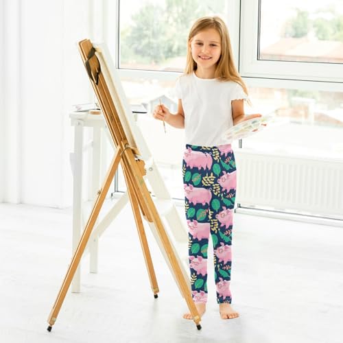Cartoon Pigs Girls' Leggings Toddler Doodles Pink Kids Yoga Pants Dance Active Tights 4T 5