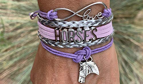 • HORSE JEWELRY -Horse infinity love charm bracelet for women, teens and girls. Equestrian Elegance Redefined: This stunning purple and silver bracelet, adorned with a charming horse charm, captures the spirit of horse lovers everywhere. It's a stylish celebration of their passion for these majestic animals.