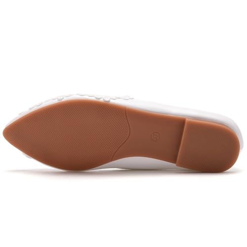 Elegant Lace Shoes for Women Pointed Toe Flats Low Heels Ladies White Mary Janes 7