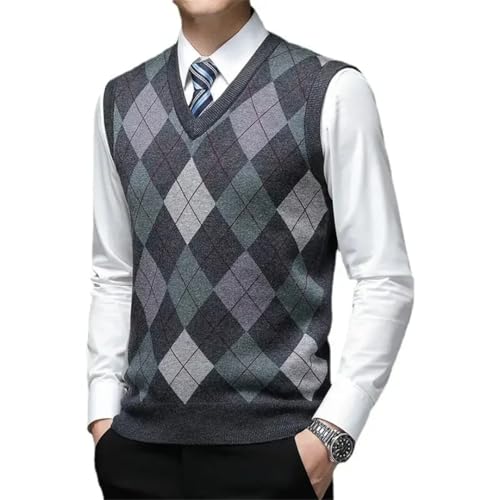 HOT ! Men's V-Neck Diamond Lattice Wool Vest for Business and Casual Wear Standard Thickness Argyle Pattern