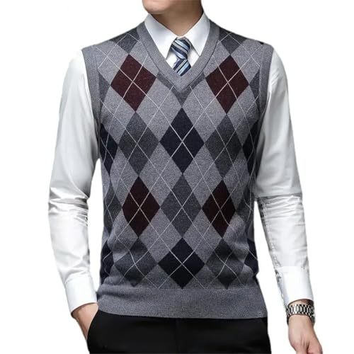 Men's V-Neck Diamond Lattice Wool Vest for Business and Casual Wear Standard Thickness Argyle Pattern 6