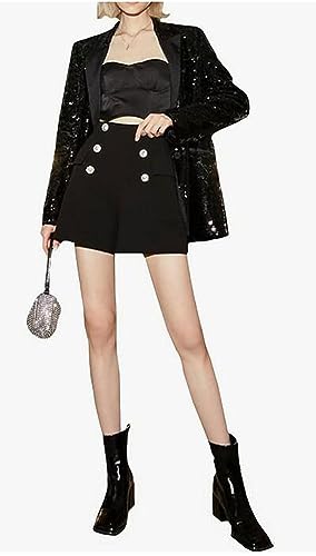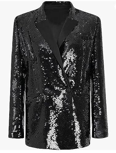 • Features: Loose Style Sequins Women Blazer,Double Breasted,Notch Lapel,Long Sleeves.The Sequin Jacket Can Be Dressed Up With a Cocktail Dress Or a Skirt For a Formal Event Or Paired With Jeans And a Basic Top For a More Casual And Chic Ensemble.