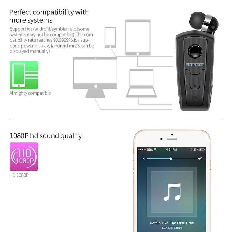 Highlights - Experience stereo sound quality with Fineblue F910 headset’s high-quality Bluetooth 4.0 chip - Enjoy music and clear communication with ease - Bluetooth 4.0 + EDR technology provides high efficient and low consumption transmission rate - Redial, keep the call, and refuse to listen by operating on the headset - Clip on clothes with the new peg design for easy access during calls - Great for listening to music, watching movies, and chatting online - a versatile choice for all your needs.