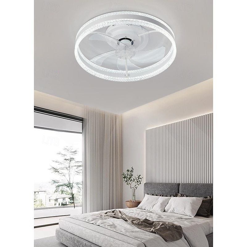 HOT ! Ceiling Fan with Light, Low Profile Fan, Flush Mount Ceiling Fan, Dimmable LED, App & Remote Control, Quiet DC Motor, for Bedroom, Living Room