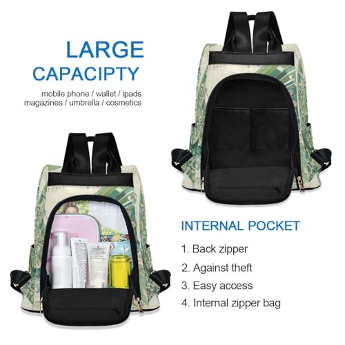 KLL Mechanical Style Butterfly Music Notes Mint Green Fashion backpacks for women Anti-theft large backpack for women for Travel, Work, Everyday with Pom-pom keychain 7