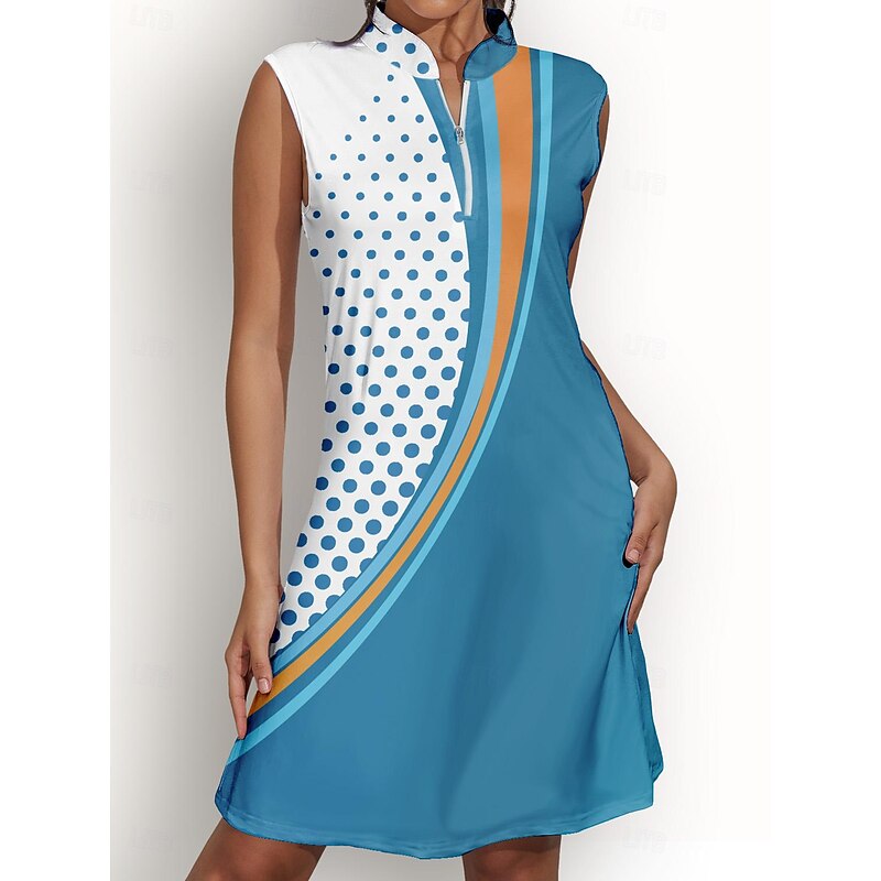 Women's Golf Dress Blue Sleeveless Sun Protection Tennis Outfit Polka Dot Ladies Golf Attire Clothes Outfits Wear Apparel 1