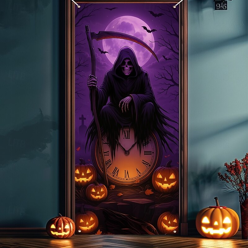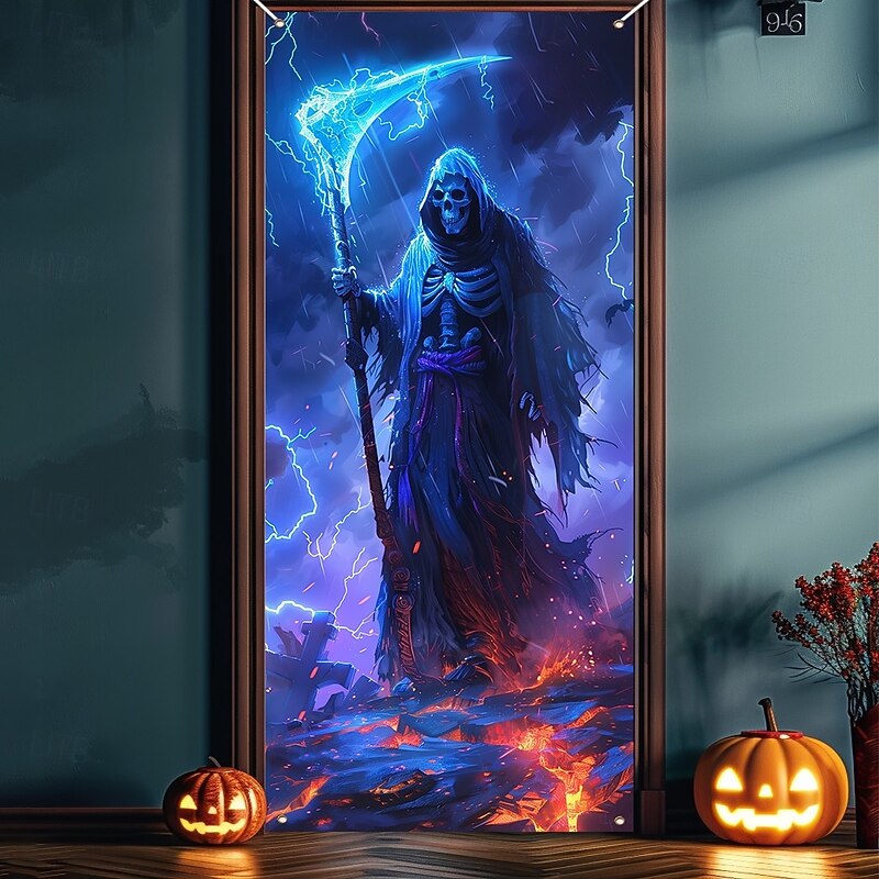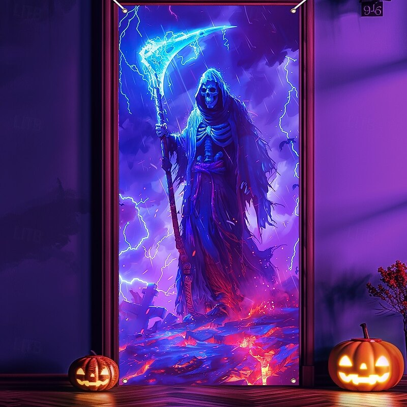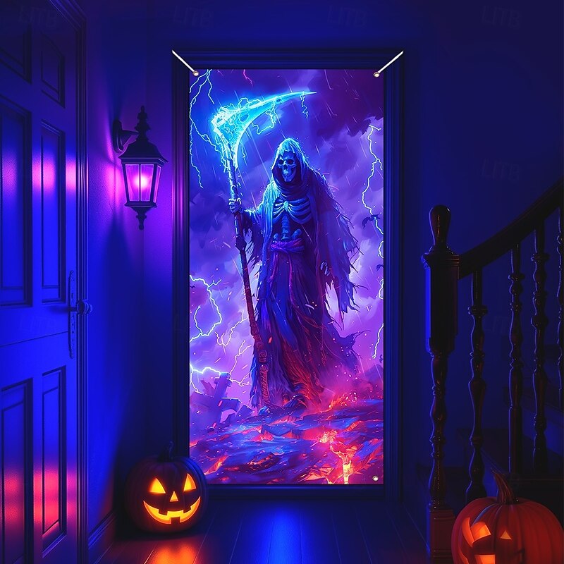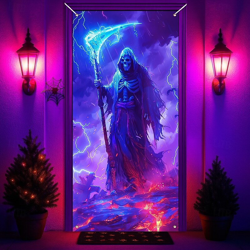 $18.99 - Halloween Door Cover Neon Grim Reaper with Lantern Banner, Glowing Blacklight Entrance Decoration for Outdoor & Indoor 2025 Halloween Bedroom, Living Room, Bathroom 2025. Shop for cheap Halloween Door Covers online? Buy at lightinthebox.com on sale today!