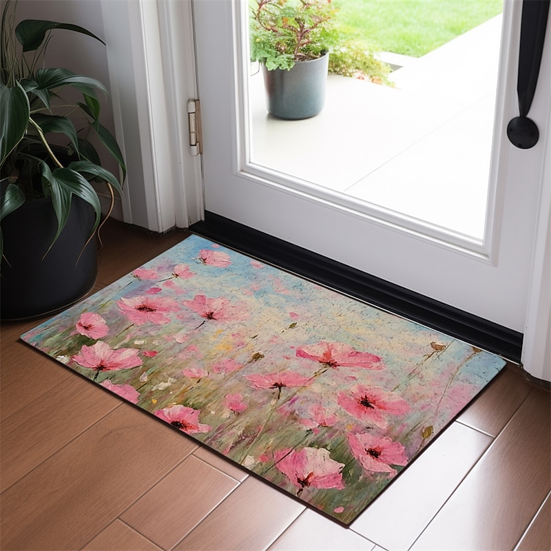 Colorful Flowers Doormat Floor Mats Washable Rugs Kitchen Mat Non-Slip Oil Proof Rug Indoor Outdoor Mat Bedroom Decor Bathroom Mat Entrance Rug 8