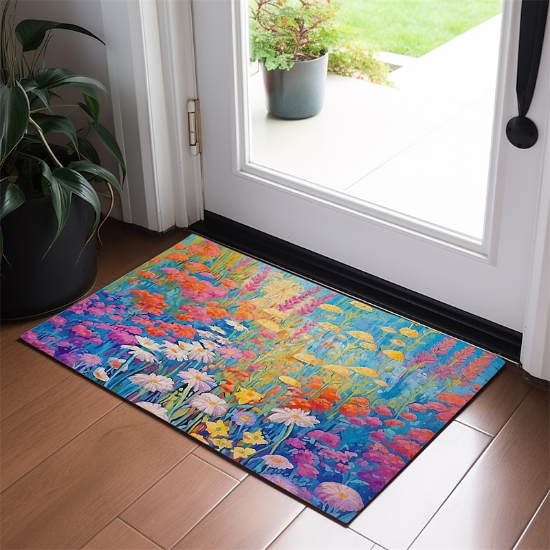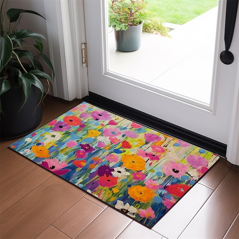 Colorful Flowers Doormat Floor Mats Washable Rugs Kitchen Mat Non-Slip Oil Proof Rug Indoor Outdoor Mat Bedroom Decor Bathroom Mat Entrance Rug 1