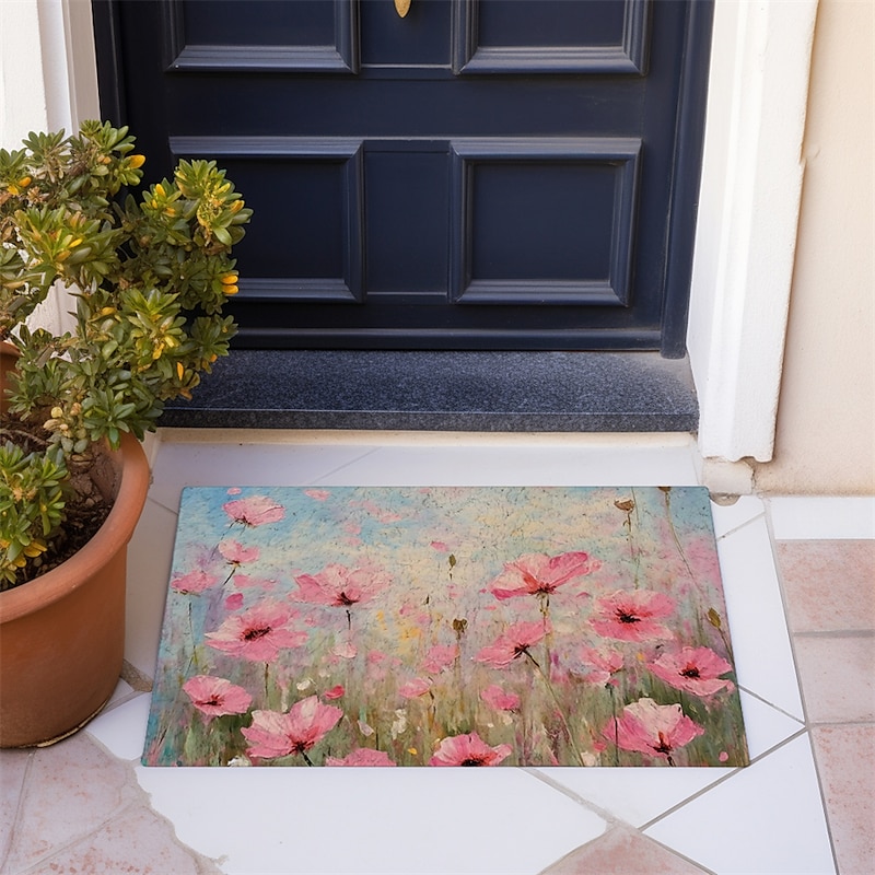 Colorful Flowers Doormat Floor Mats Washable Rugs Kitchen Mat Non-Slip Oil Proof Rug Indoor Outdoor Mat Bedroom Decor Bathroom Mat Entrance Rug 25