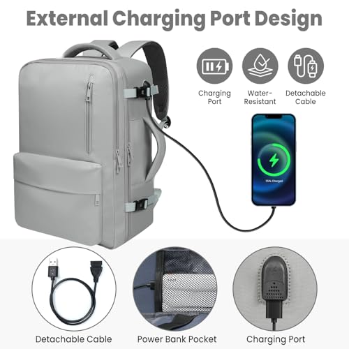 35L Travel Backpack | 180° All-Open Design | Multi-Pockets | Airline Approved Carry on |15.6 inch Laptop Compartment |USB Port |Perfect for Travel Business College Bookbags |Men Women Dark Grey 7