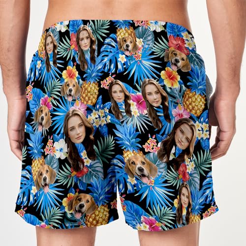 Custom Mens Swim Trunks with Face Personalized Funny Hawaiian Swim Shorts with Photo Beach Board Shorts Gift for Men 5