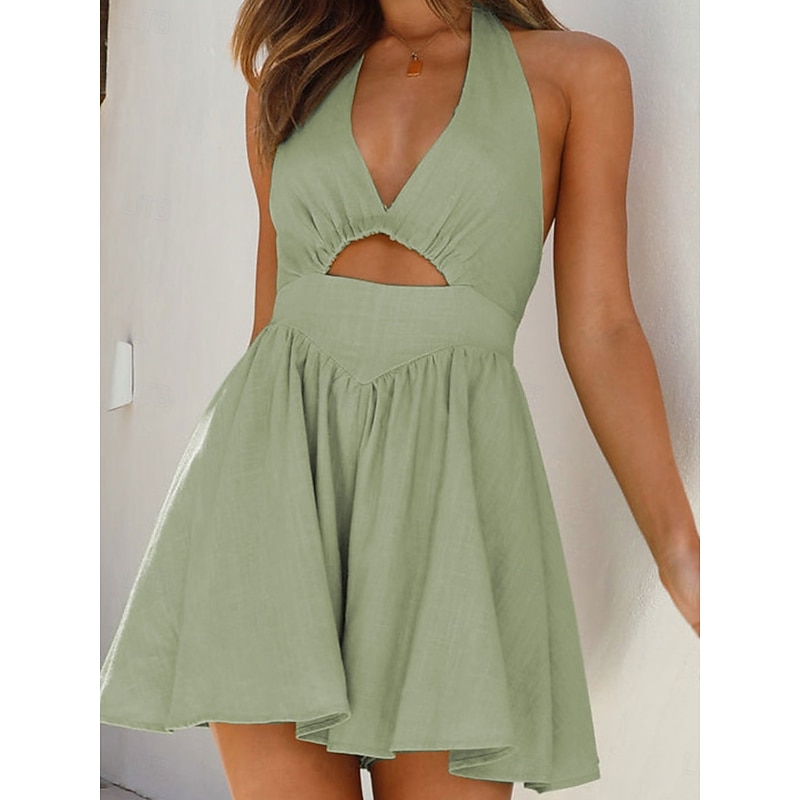 This Women's Mini Dress Cotton Linen Dresses Basic Casual Vacation Daily Date Regular Fit Plain Sleeveless Halter Neck Black White Green Summer Spring combines elegant design with practical functionality. Every detail has been carefully considered to ensure you get the ultimate possible experience. The top-grade construction means this product will serve you well for years to come.