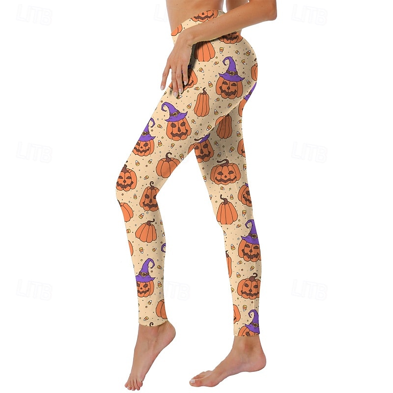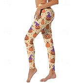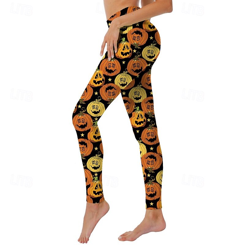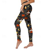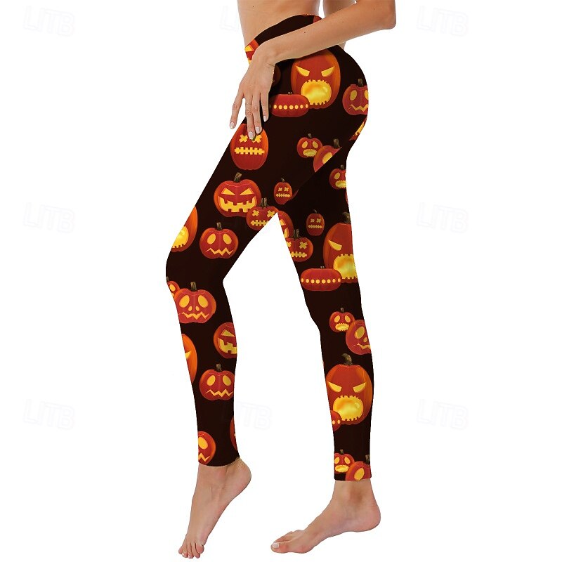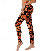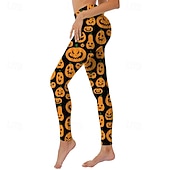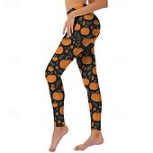 More information about Women's Slacks Leggings Streetwear Casual Full Length NaturalPantsHalloween Pumpkin Elastic Waist Printing Soft Street Holiday Daily Wear Black Gold Orange red Brass Black Fall Regular Fit