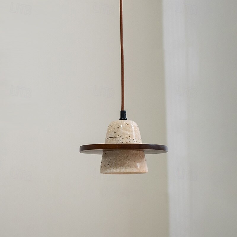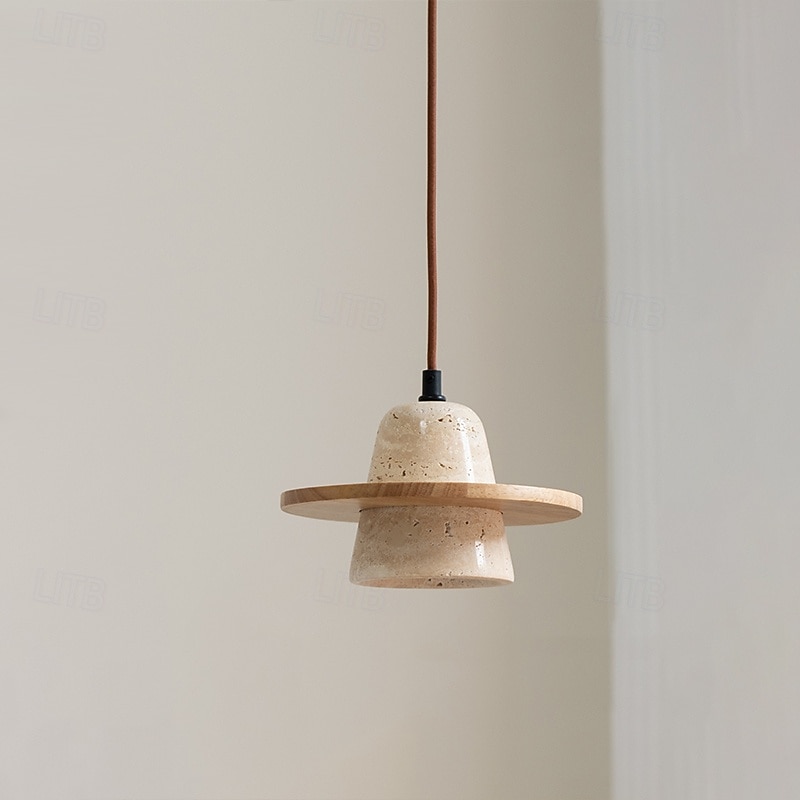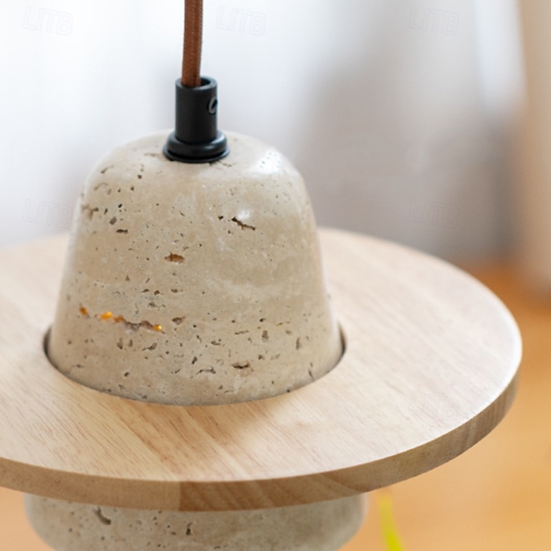 Wabi Sabi Natural Stone Pendant Light Decor Concrete Pendant Light Travertine Hanging Light Bedside Aisle Bar Club Wood Shade 20cm 85-265V 1