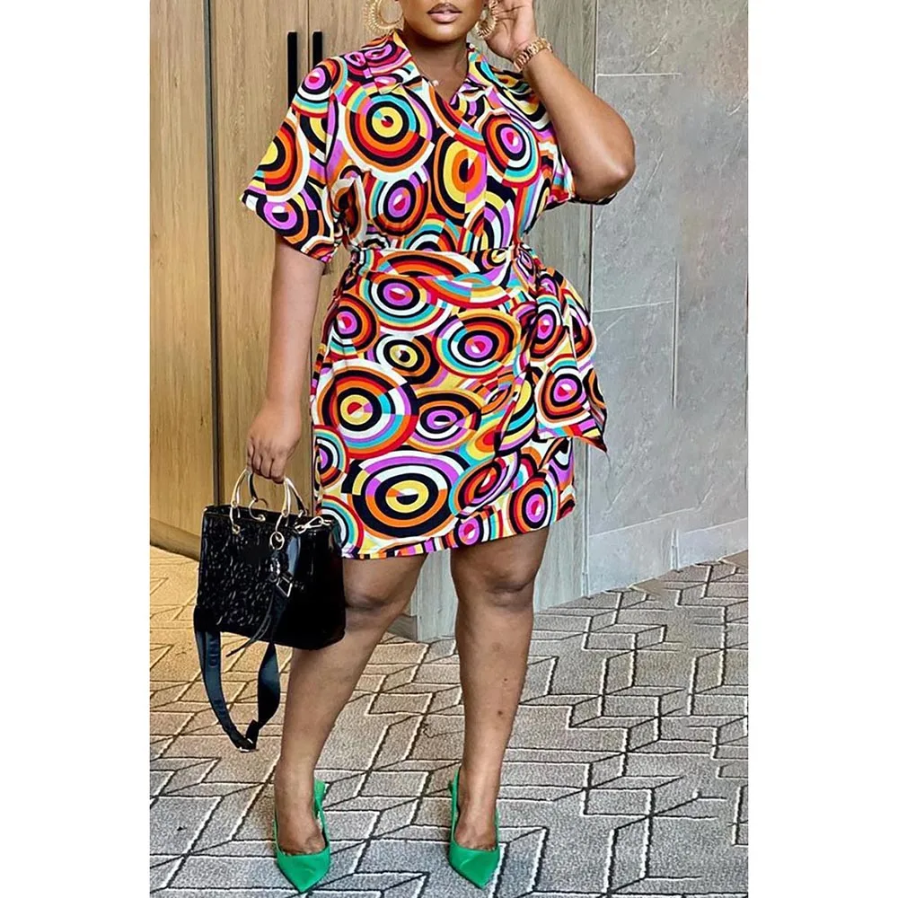 Highly Recommend Plus Size Print Short Sleeves Lapel Wrap Dress