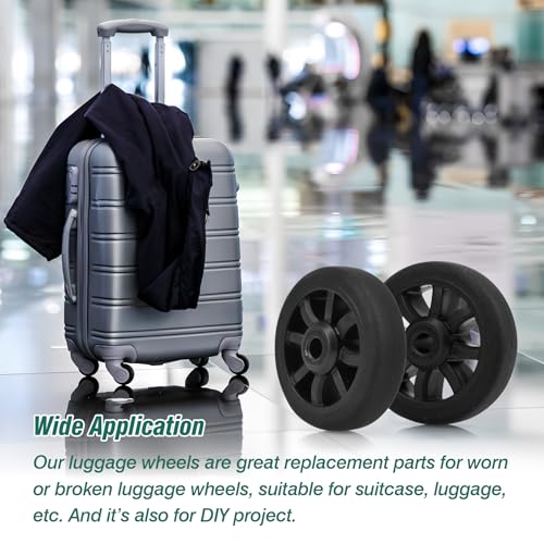 • Premium Material: Crafted from superior rubber and robust metal bearings, our luggage wheels ensure quiet operation, impressive resilience, and excellent load capacity for an unmatched rolling experience.