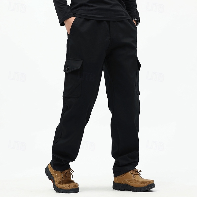 More information about Men's Cargo Pants Cargo Trousers Fleece Pants Drawstring Pocket Warm Plain Comfort Soft Full Length Outdoor Business Casual Fashion Streetwear Black Army Green Inelastic