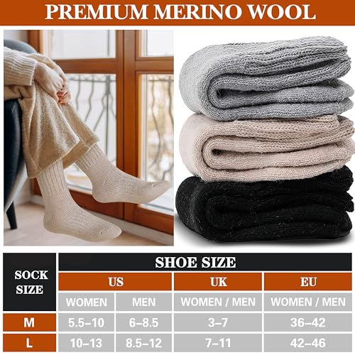 Merino Wool Boot Socks Thermal Winter Warm Thick Cozy Hiking Socks for Men Women 3 Pairs 6